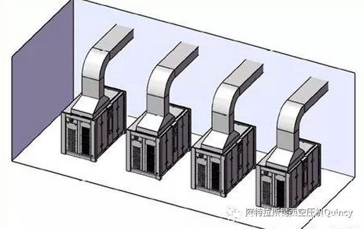 作為昆西空壓機的冷卻熱風必須由管道排出空壓機房外面,保持空壓機機房的合適溫度。